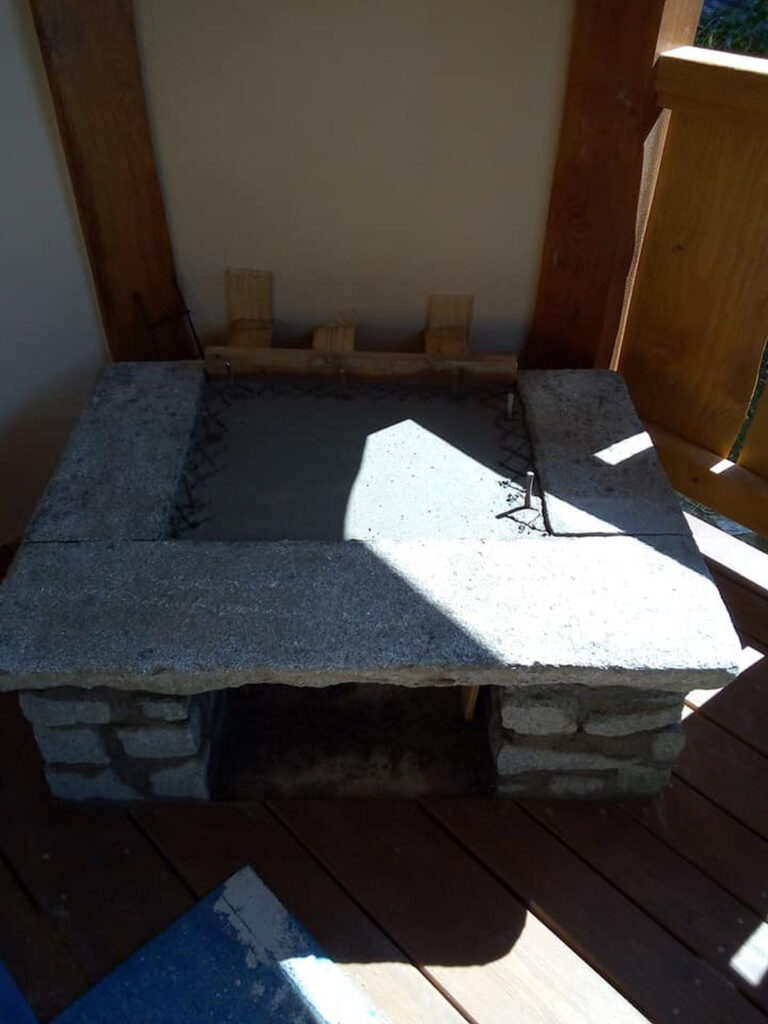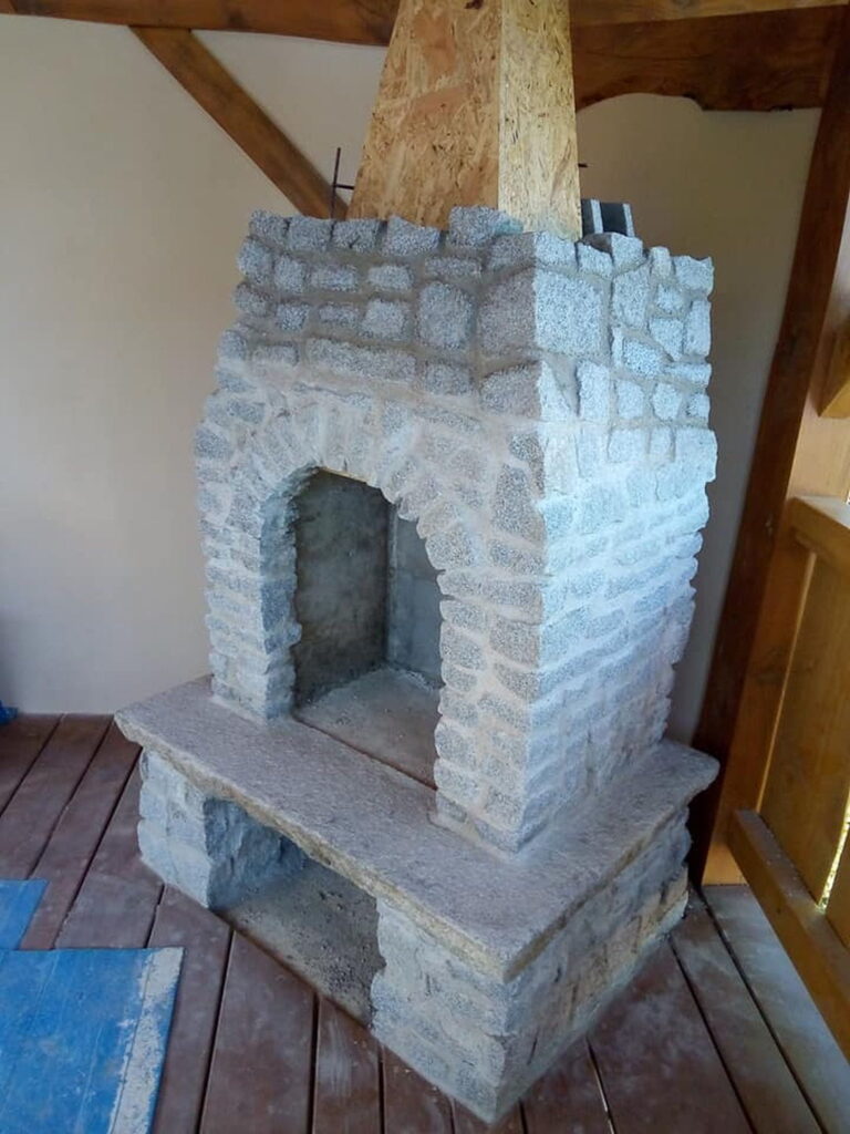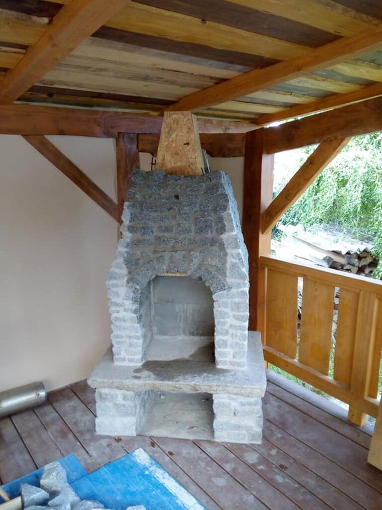 Stavba kamenných krbových kamen v zahradním přístřešku podle přání zákazníka.