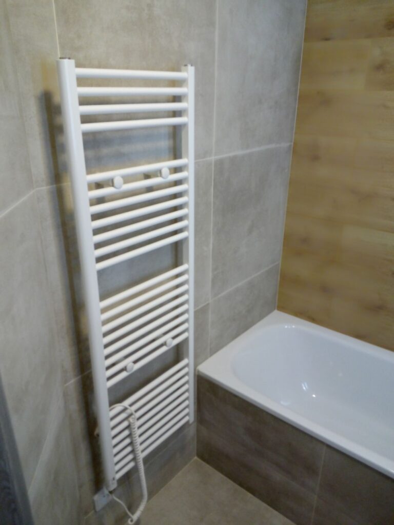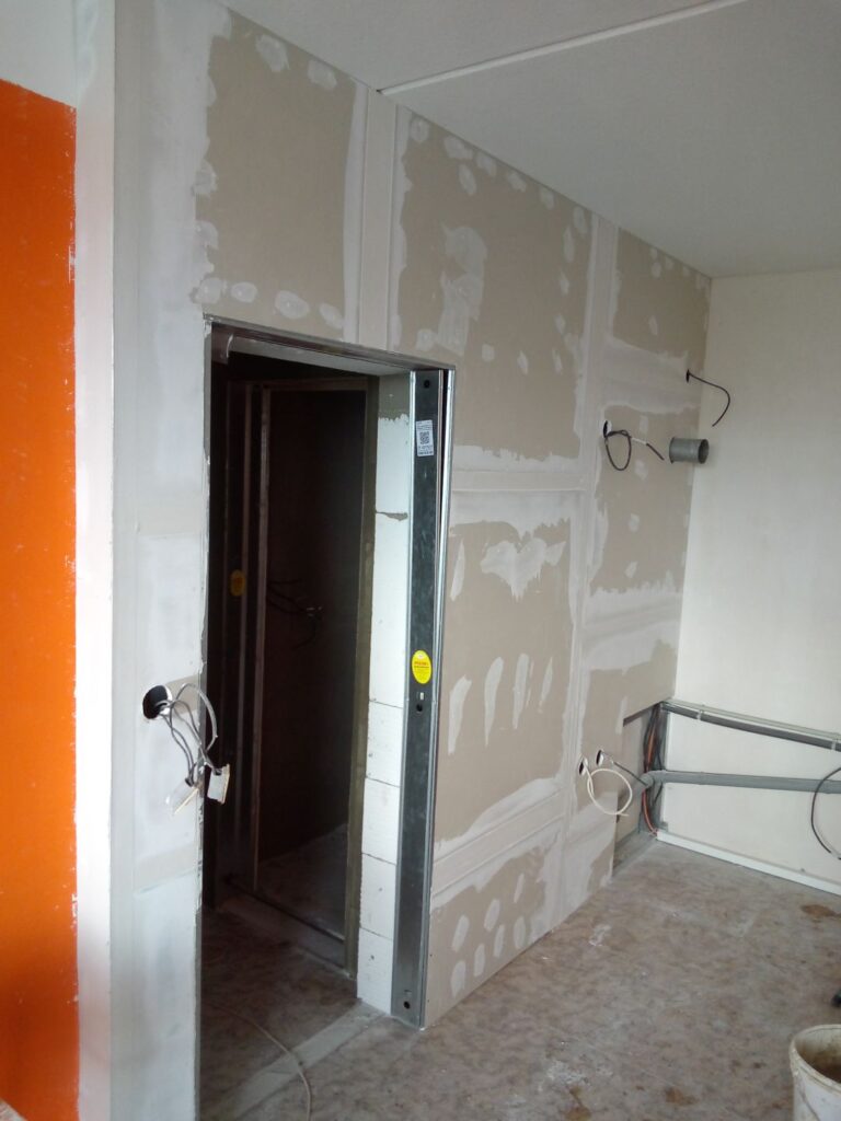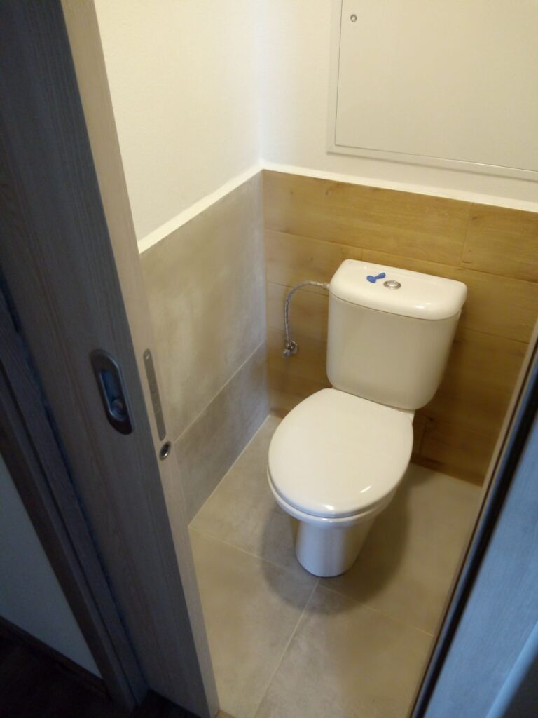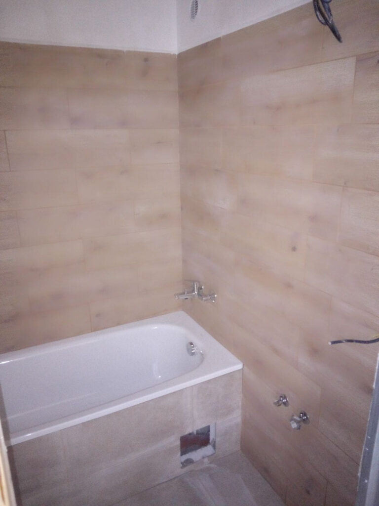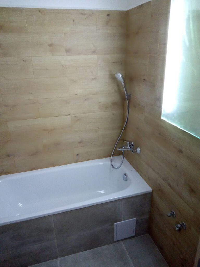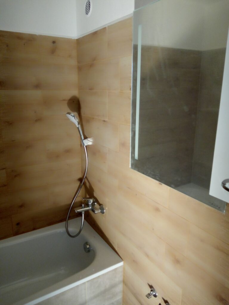 Rekonstrukce panelákového jádra zahrnovala kompletní vybourání starého umakartového bytového jádra s vyzděním a kompletním vybavením nové koupelny. Následovala pokládka celého bytu vinylovou podlahou, vyštukování stěn, montáž posuvných dveří a výmalba.
