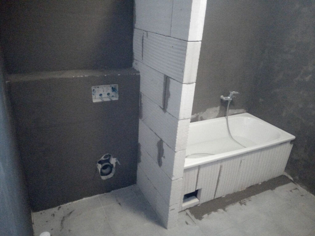 Rekonstrukce koupelny s osazením vany a WC včetně úpravy elektroinstalace, vody a odpadů.